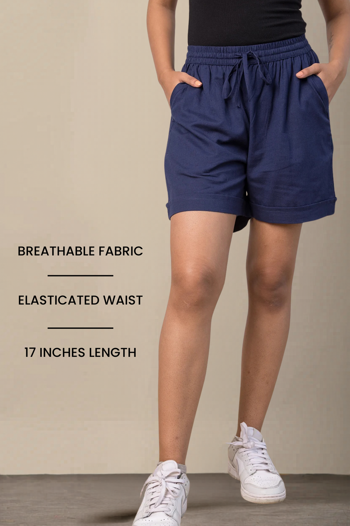 All round elasticated waistband with adjustable waistband gives great fit and all day comfort. Shorts length is 17.